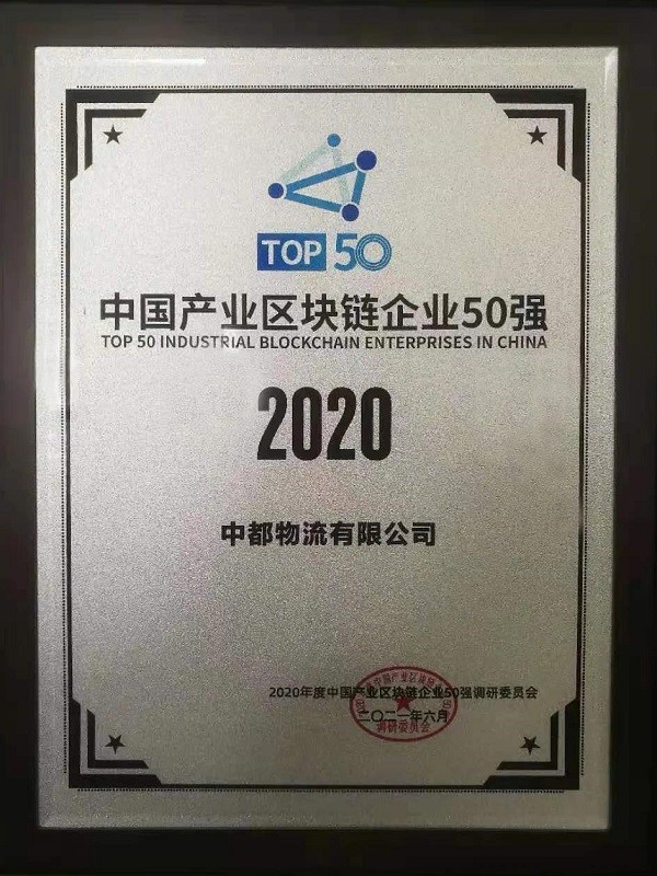 會(huì)議還公布了2020中國(guó)產(chǎn)業(yè)區(qū)塊鏈企業(yè)50強(qiáng),表彰為推動(dòng)區(qū)塊鏈技術(shù)產(chǎn)業(yè)應(yīng)用落地做出突出貢獻(xiàn)的企業(yè),中都物流作為物流行業(yè)代表企業(yè)順利入圍。