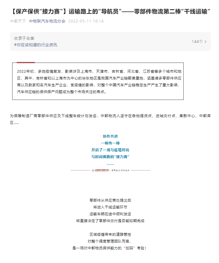 【保產(chǎn)保供“接力賽”】運(yùn)輸路上的“導(dǎo)航員”——零部件物流第二棒“干線運(yùn)輸”